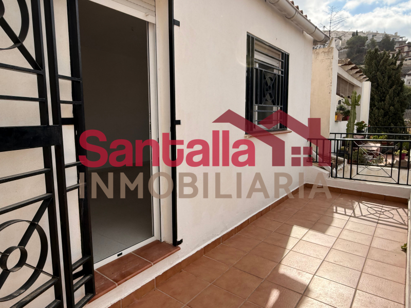 Continuando por su escalera encontraremos la puerta principal de la casa, que nos da acceso a un pequeño recibidor que nos permite entrar en las primeras dos habitaciones de la vivienda, ambas con armario empotrado y ventana al exterior, siendo las dos habitaciones dobles y muy amplias. Subiendo a la entreplanta tenemos otros dormitorio doble, con armario empotrado y acceso a una terraza de aproximadamente 8m² con vistas panorámicas de la periferia de la ciudad con orientación sur. Volviendo al recibidor principal, bajamos a la primera planta donde se haya el gran salón comedor con ventanales de doble acristalamiento que lo convierte en una estancia cálida y muy luminosa, contando también con una chimenea empotrada en el propio mueble realizado a medida del salón. En esta misma planta tenemos un baño completo con plato de ducha y su ventana al exterior para una mejor ventilación del mismo.
